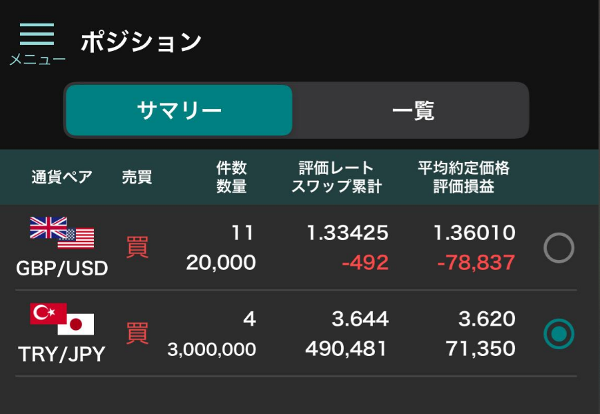 トルコリラは基本下がり続けるので含み損を抱えながらもスワップを貯めて月に数万円でも収入があれば御の字というつもりで始めたトレードなので。